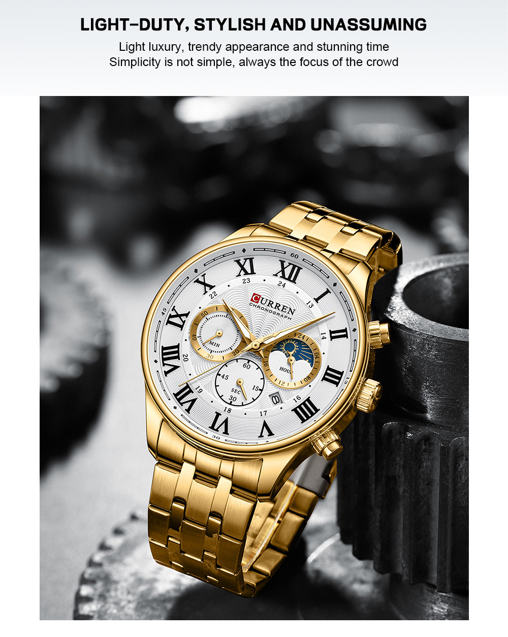 Men Calendar Watch Steel Band Watch Six-pin Watch